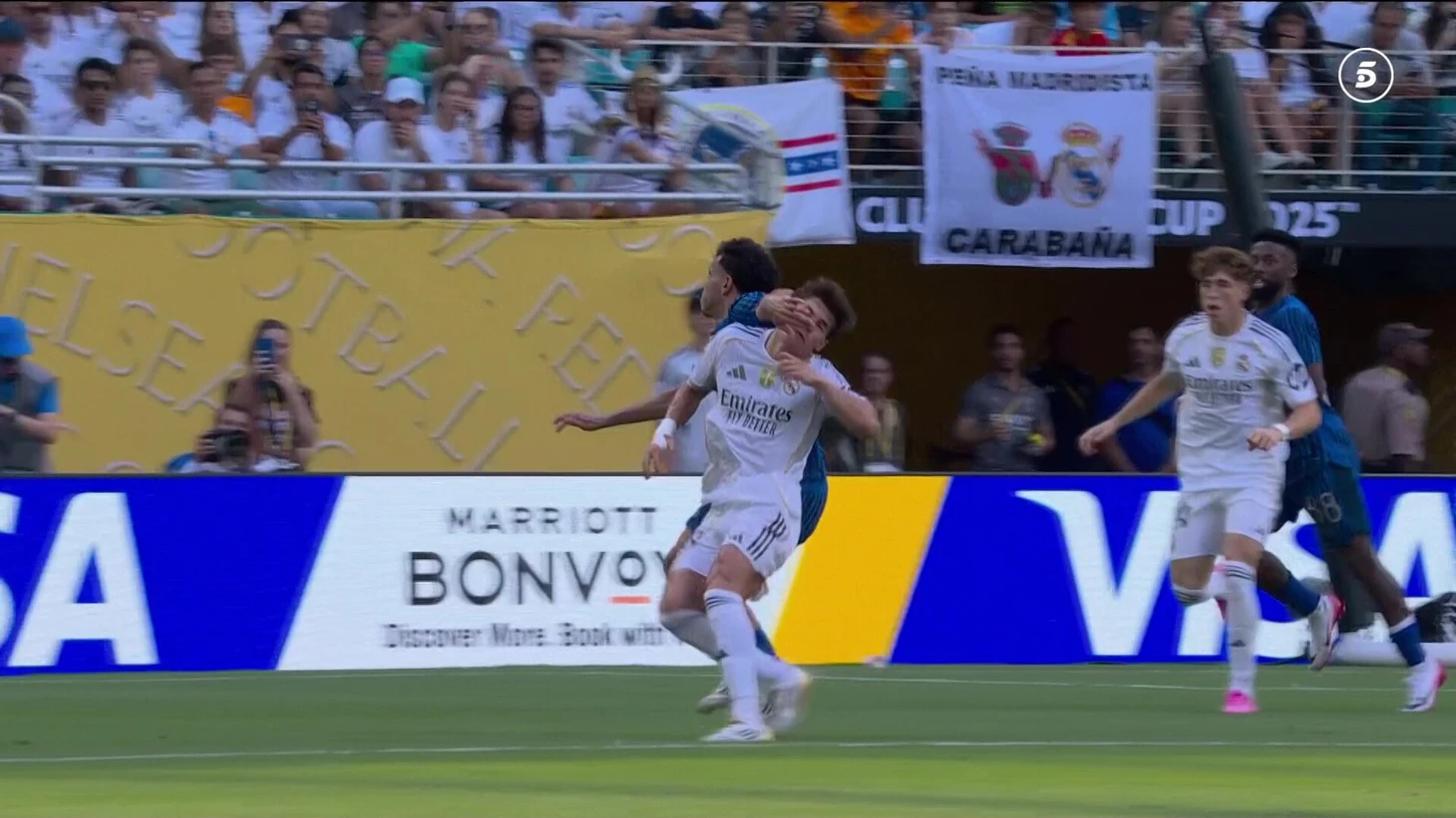 На 87-й минуте хавбек саудовцев Мохаммед Аль-Кахтани попал локтем в челюсть Франу Гарсии. Защитник «Реала» упал на газон в штрафной «Аль-Хилаля.