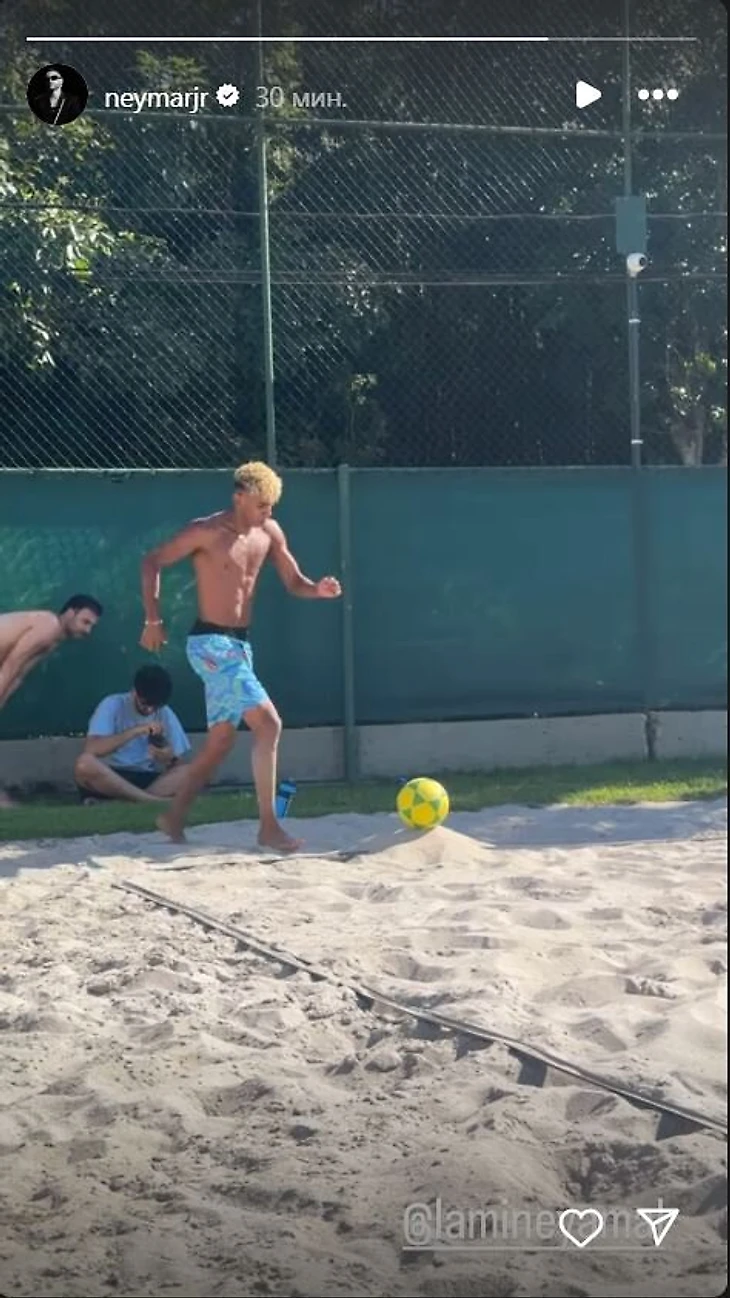 33-летний бразилец выложил в сторис инстаграма короткое видео, на котором испанец играет в футволей.