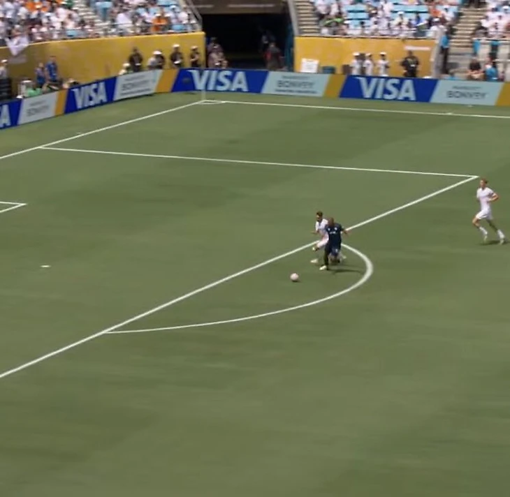 35-летний форвард мексиканцев Хосе Саломон Рондон убежал один на один с вратарем «сливочных». Асенсио прихватил венесуэльца и повалил его на газон возле штрафной «Мадрида».