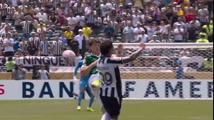 Защитник «Палмейраса» Хиай ударил ногой в поясницу Жезуса из «Ботафого», пытаясь сыграть в мяч. Судья Летексье не показал карточку