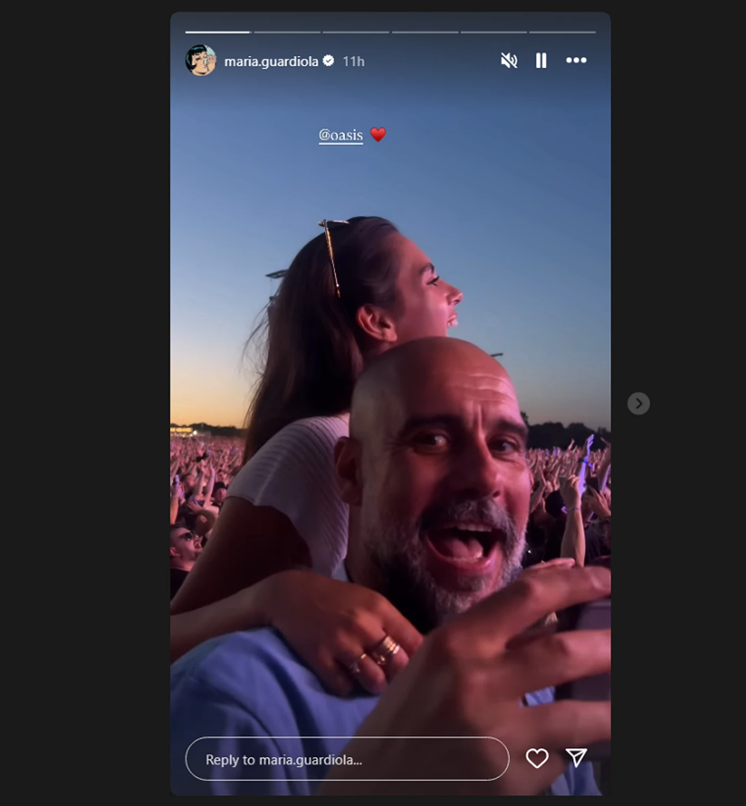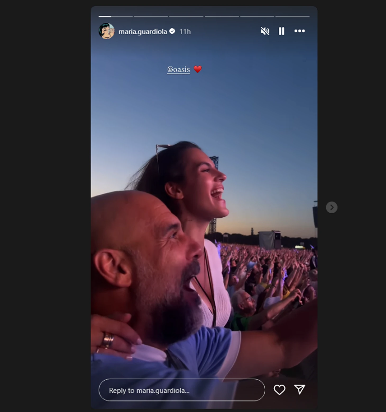 Гвардиола был на концерте с дочерью Марией, которая выложила в сторис видео с отцом, подпевающим хиту Don’t Look Back In Anger.