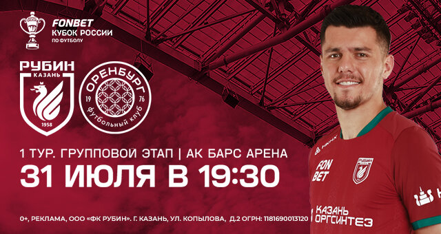 В первом туре Фонбет Кубка России «Рубин» встретится с «Оренбургом».