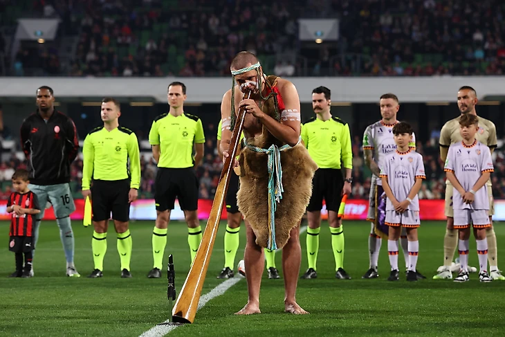 Перед началом игры на стадионе прошло шоу с участием членов коренных австралийских племен.