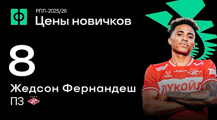 • Жедсон стоит 8 млн в Фэнтези. Новичок «Спартака» стал 4-м по цене полузащитником в команде