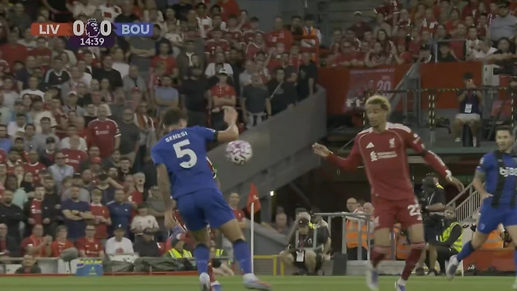 Защитник «Борнмута» Сенеси махнул рукой возле мяча, помешав Экитике выйти 1 на 1. Тэйлор не увидел касания, ВАР не вмешался