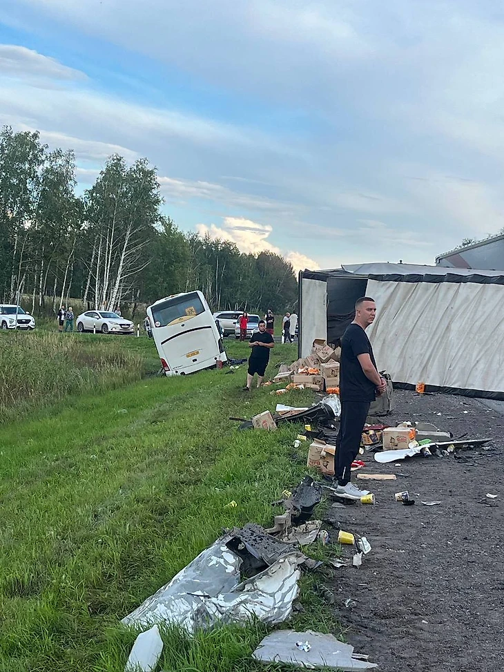 После этого клубный автобус продолжил движение, выехал на встречную полосу, столкнулся с другим большегрузом и съехал с дороги.
