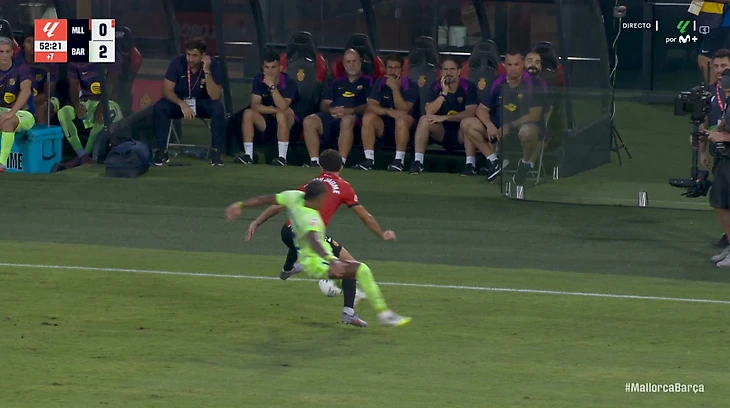 В компенсированное к первому тайму время вингер каталонцев жестко сбил защитника соперника Матеу Морея. Главный арбитр встречи Хосе Мунуэра Монтеро показал бразильцу желтую карточку.