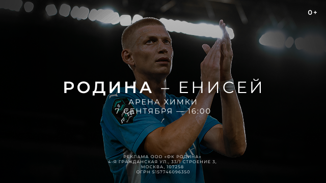 «Родина» принимает «Енисей». Приходите поддержать команду на стадионе в матче против красноярцев!