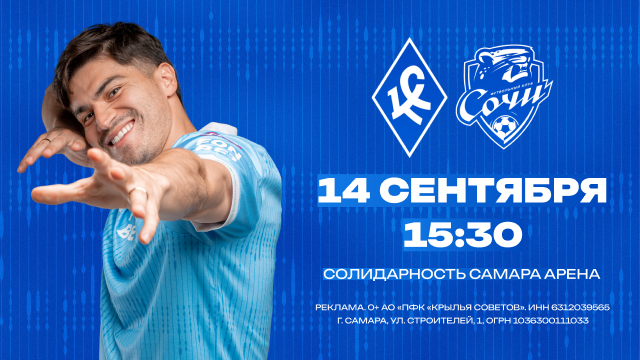 «Крылья» принимают «Сочи». Самарцы, приходите на «Солидарность Самара Арену» поддержать команду!