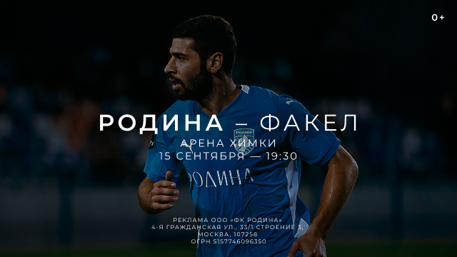 «Родина» встретится с «Факелом». Команде нужна ваша поддержка на «Арене Химки» в матче против воронежцев!