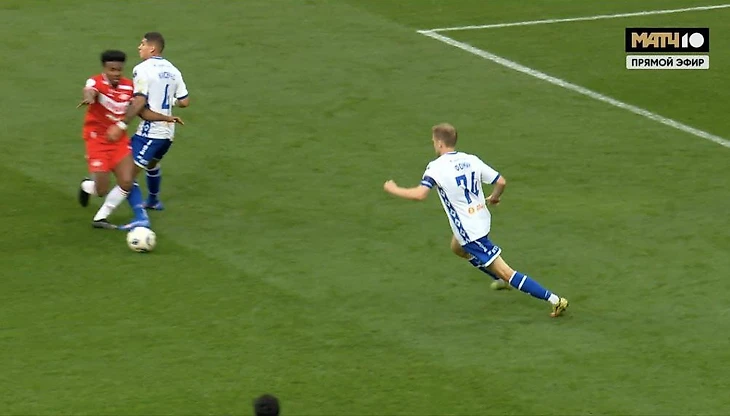 Результативная атака бело-голубых началась с того, что игрок красно-белых Маркиньос Коста упал у штрафной площади соперника в результате борьбы с защитником Хуаном Касересом. Во время атаки бразилец лежал на газоне, нарушение не было зафиксировано.
