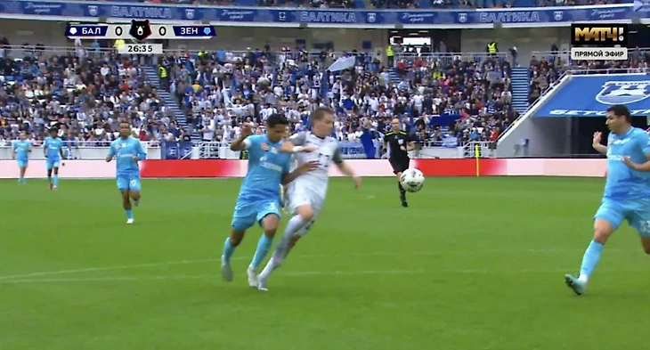 Фанаты «Балтики» скандировали «Зенит» – позор российского футбола» после падения Титкова в штрафной в борьбе с Дугласом