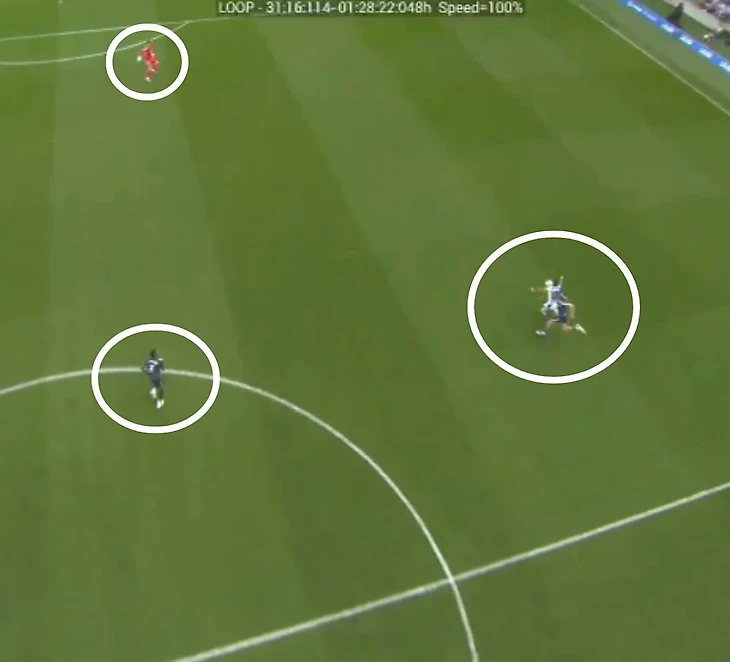 2. Милитао, вопреки первоначальному впечатлению, находился не так близко, чтобы успеть помешать форварду «Сосьедада» выйти один на один с голкипером.