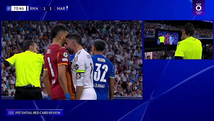 Главный судья Ирфан Пельто изучил повтор и принял решение удалить Карвахаля.