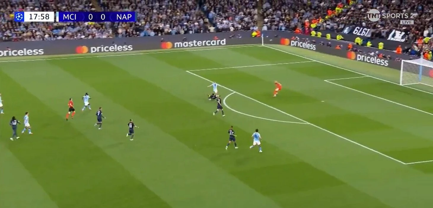 На 18-й минуте капитан гостей Джованни Ди Лоренцо сбил в подкате нападающего хозяев Эрлинга Холанда у линии штрафной площади.