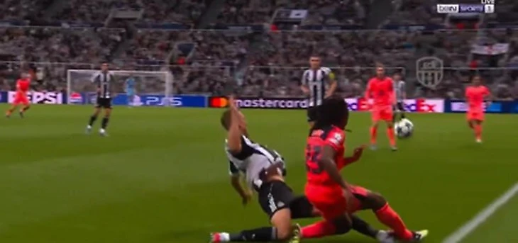 Главный арбитр Гленн Нюберг показал защитнику «Ньюкасла» желтую карточку. Защитник «блауграны» демонстрировал, что ему больно.