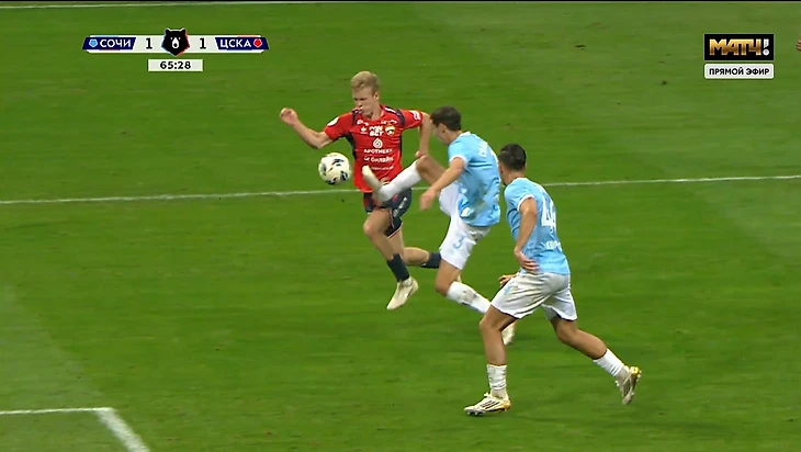 ЦСКА забил «Сочи» 2-й гол с пенальти после удара Солдатенкова ногой в бедро Кисляку