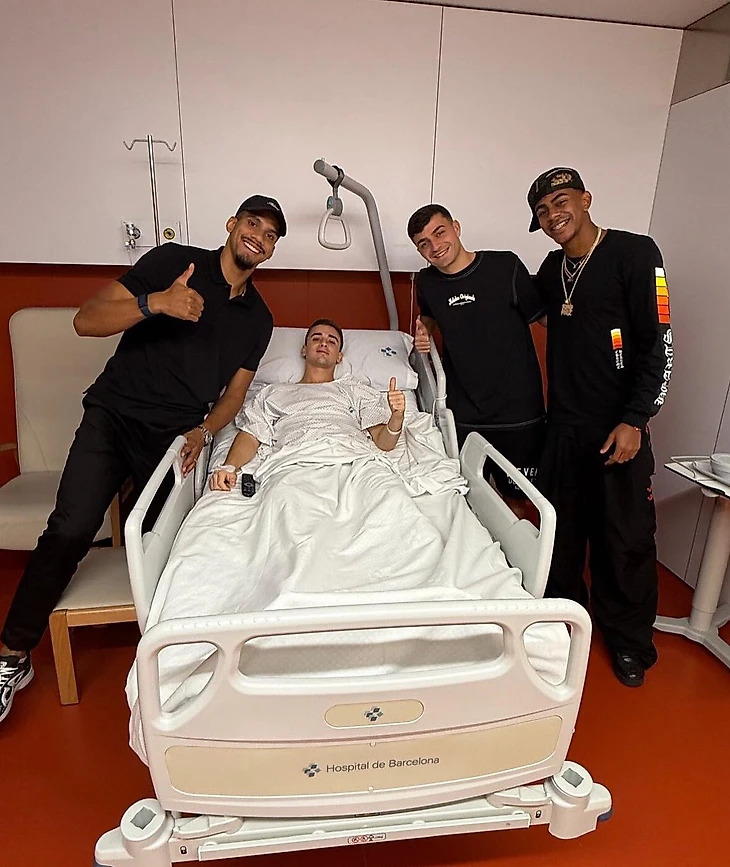 Он опубликовал фото из больничной палаты с навестившими его партнерами по «Барсе» – Рональдом Араухо, Педри и Ламином Ямалем.