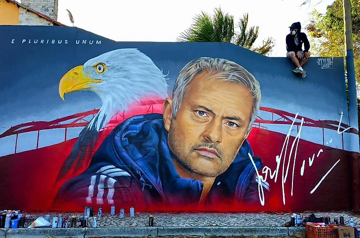 Граффити длиной около 7 метров и высотой около 4,5 метра появилось в районе Риу-ди-Мору, входящем в округ Лиссабона. На мурале вместе с Моуринью изображен орел, который является символом «Бенфики», силуэт домашнего стадиона команды «Эштадиу да Луш» и клубный девиз «E pluribus unum» (лат. «Из многих – единое» – Спортс’‘).