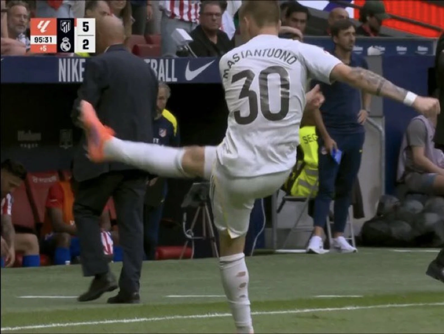 Мастантуоно пнул мяч в сторону скамейки «Атлетико», спровоцировав конфликт в концовке дерби. Хавбек «Реала» получил желтую