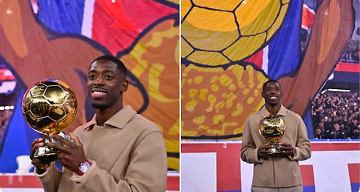 Усман Дембеле показал «Золотой мяч» болельщикам «ПСЖ» после матча 6-го тура Лиги 1 с «Осером» (2:0).