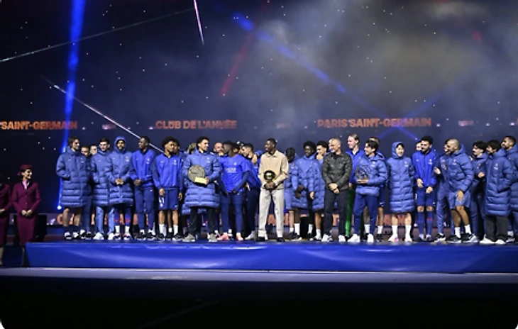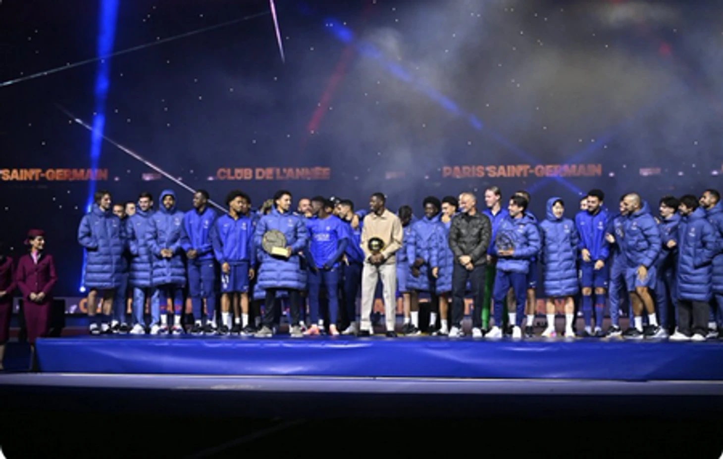 Капитан парижан Маркиньос показал приз, вручаемый лучшему клубу года.