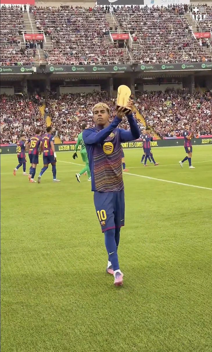 18-летний вингер «Барселоны» вынес приз лучшему футболисту мира до 21 года на поле стадиона «Олимпик Льюис Компанис» перед игрой с «Реал Сосьедад» в 7-м туре Ла Лиги (2:1).