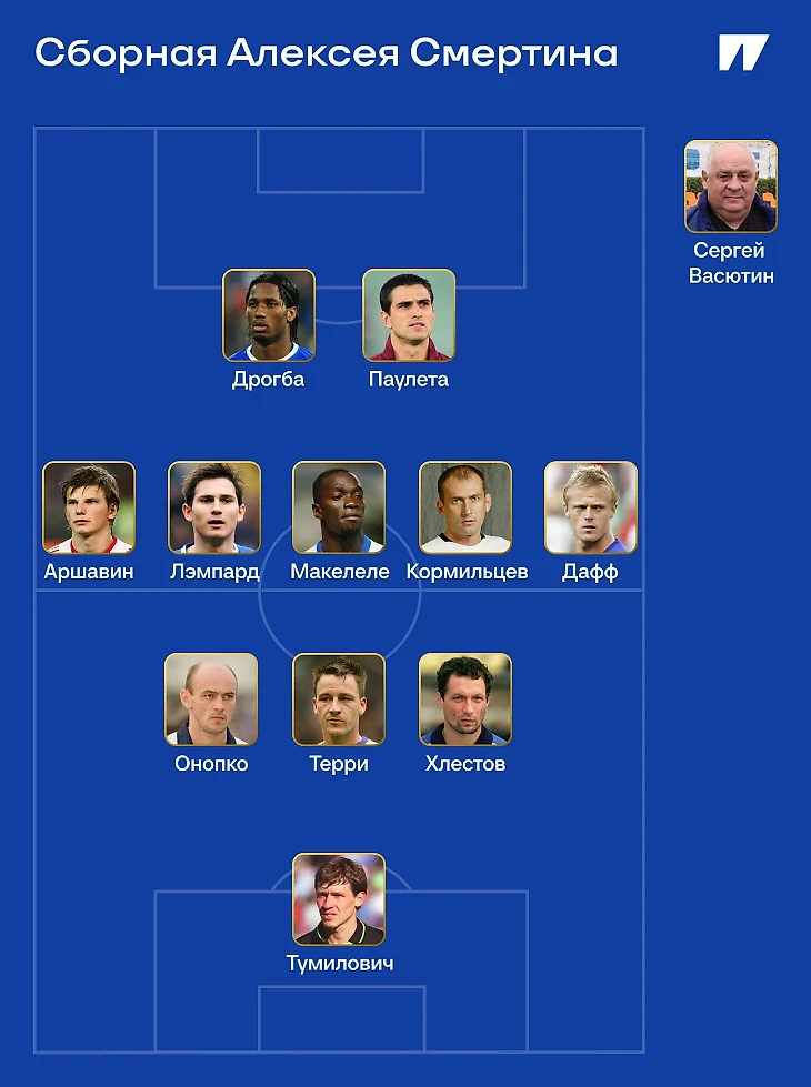 • Смертин включил Дрогба, Аршавина, Тумиловича, Терри, Лэмпарда, Онопко в символическую сборную тех, с кем играл