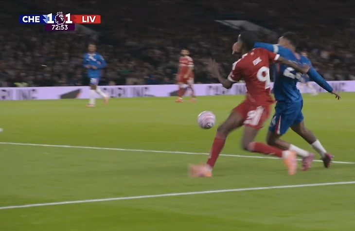 На 73-й минуте Александер Исак и Рис Джеймс начали борьбу за мяч за пределами штрафной «Челси». Форвард «Ливерпуля» получил удар по лицу в штрафной, после чего оказался на газоне. Главный судья Энтони Тэйлор на усмотрел в этом эпизоде 11-метровый.