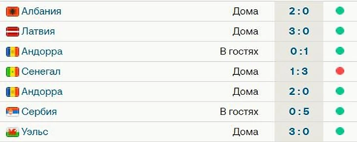 Сборная Англии выиграла три матча подряд.