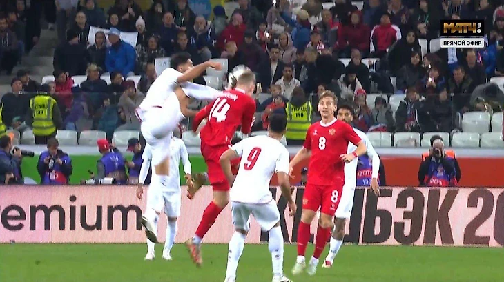 Мелехин получил удар шипами в голову в прыжке от Джаханбахша – у него рассечено ухо и остались раны на шее. Судья показал вингеру сборной Ирана желтую