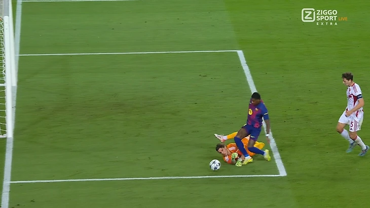 После короткого розыгрыша перед штрафной «Олимпиакоса» Маркус Рэшфорд выскочил на угол вратарской и успел прокинуть мяч в сторону от Константиноса Цолакиса – голкипер руками задел ноги форварда «Барсы», который после контакта упал на газон.