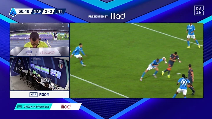На 57-й минуте мяч после удара Лаутаро Мартинеса головой попал в оставленную руку Алессандро Буонджорно. Главный судья Маурицио Мариани изначально не увидел поводов для пенальти. ВАР пригласил арбитра изучить повтор, после чего тот поменял решение.