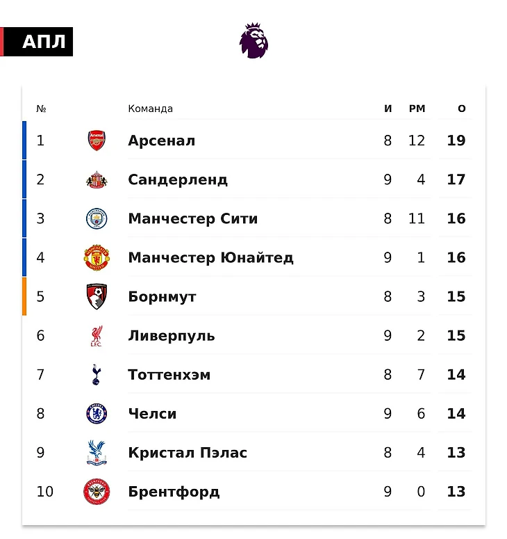 Таким образом, «Манчестер Юнайтед» набрал 16 очков и опередил команду Арне Слота в таблице АПЛ, поднявшись на 4-ю строчку на данную минуту. У «красных» в данный момент 15 баллов и 6-е место.