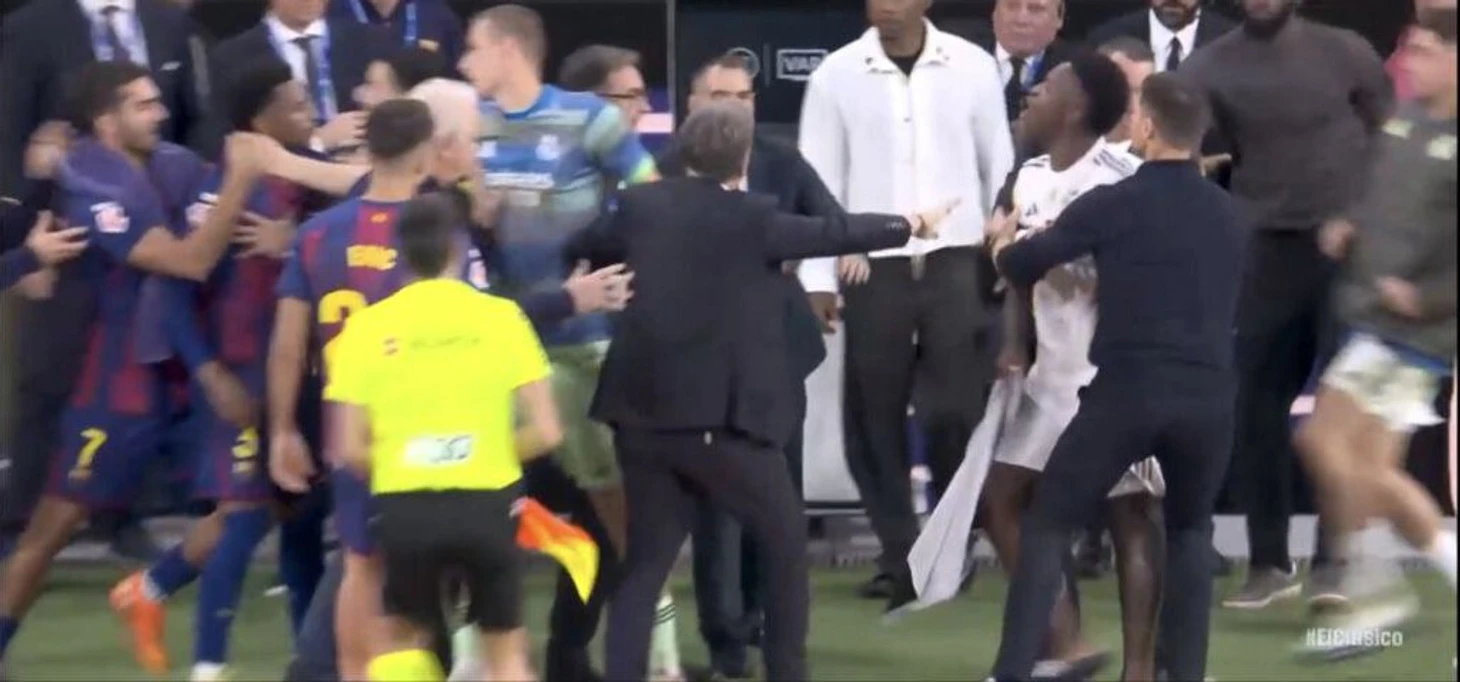 После удаления у скамеек запасных началась стычка. В ней принимали участие игроки и члены штабов обеих команд, включая Винисиуса, Килиана Мбаппе, Андрея Лунина, Эдера Милитао, Алекса Бальде.