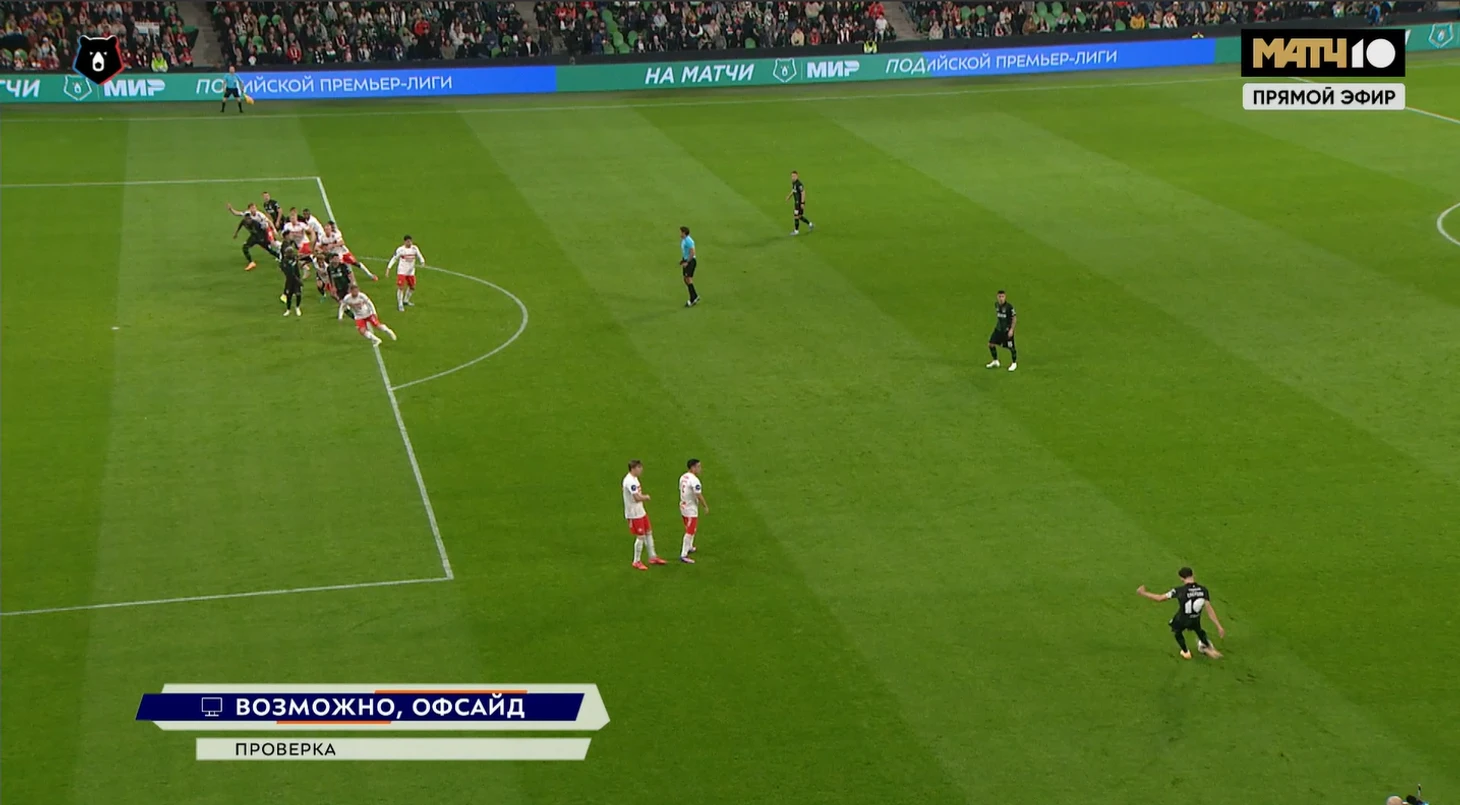 Нападающий «Краснодара» забил головой на 10-й минуте после подачи Эдуарда Сперцяна со штрафного. Главный арбитр матча Кирилл Левников после проверки ВАР отменил гол, так как Кордоба находился в офсайде.