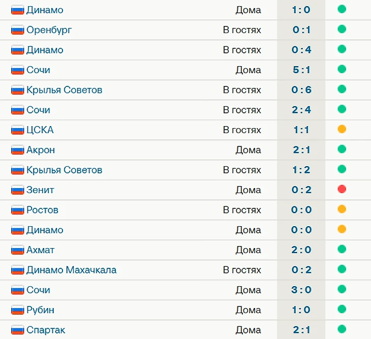 В 17 последних матчах «Краснодар» одержал 14 побед, в том числе над «Динамо» в серии пенальти (0:0, пен. 4:2) в рамках Фонбет Кубка России, дважды сыграл вничью и уступил «Зениту» (0:2).