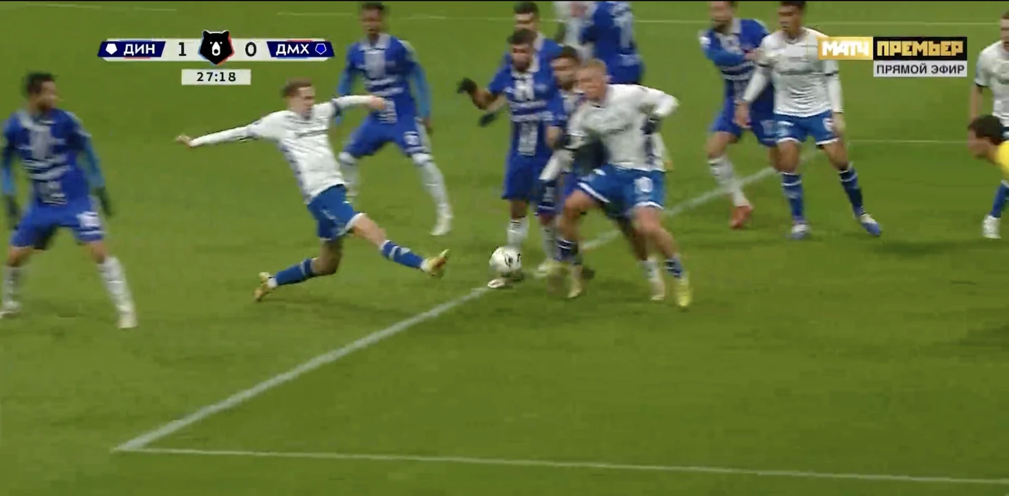 Тюкавин пяткой забил «Махачкале» – форвард «Динамо» замкнул прострел Гладышева