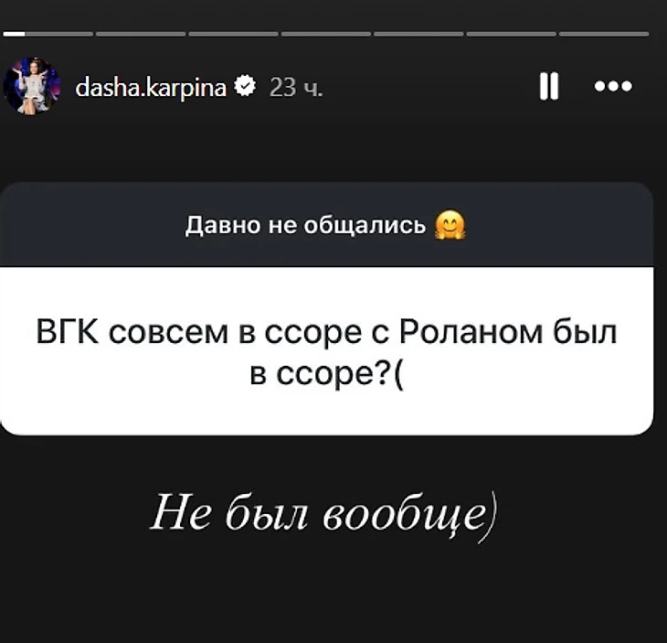 – Не был вообще, – ответила Карпина подписчику в соцсетях.