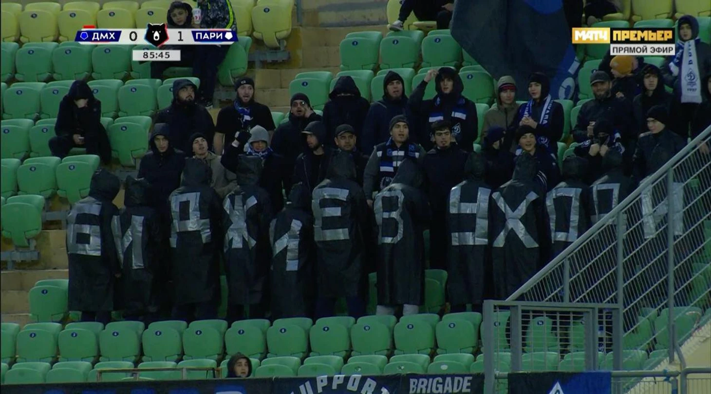 Фанаты махачкалинского «Динамо» показали надпись «Биджиев, уходи» на спинах во время матча с «Пари НН» и скандировали тренеру «Уходи!»