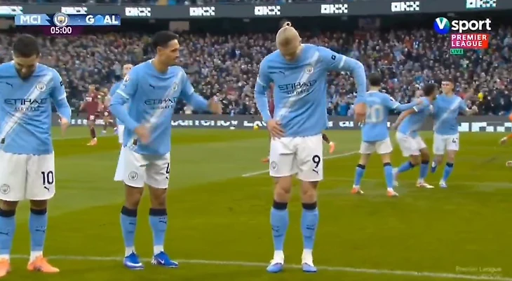 Нападающий «Манчестер Сити» Эрлинг Холанд снова исполнил «танец робота» после забитого мяча.