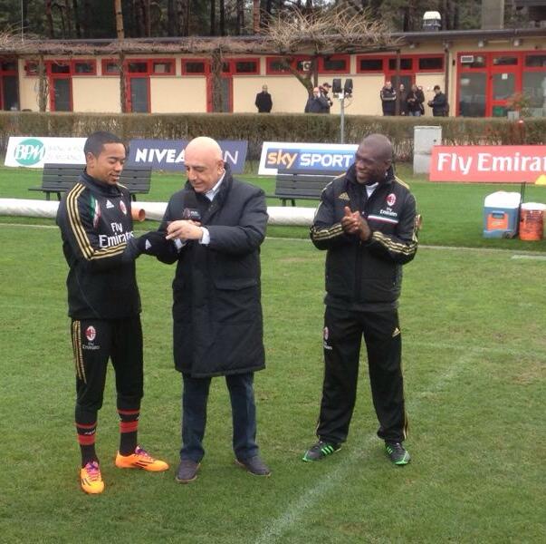 Сегодня на клубной базе в Миланелло вице-президент «Милана» Адриано Галлиани вручил голландскому хавбеку памятную медаль за 100-й матч.