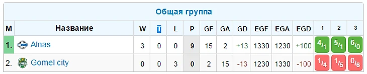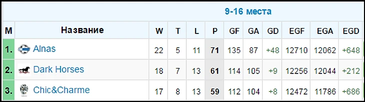 Во Франции, для выхода во второй этап, к примеру, Алнасу не хватило 1 одного очка, и клубу пришлось бороться только за 9 место. Кстати, в этой группе нефтяникам просто не было равных (7 побед), а будущий чемпион Gomel City был уничтожен в финале Кубка с общим счетом 15:2. И, вообще, к чемпионству Гомеля возникает много вопросов. Так, например, взяв золотого дракона (12710 ФО), Алнас опередил гомельчан на 332 ФО. Разрыв просто огромен. Но, не смотря на всё это, парни из Алнаса сумели урвать 3 индивидуальные награды из 6, а Артур смог поставить клубный рекорд по количеству забитых мячей в одном чемпионате (не более 20 команд): 27 мячей.
