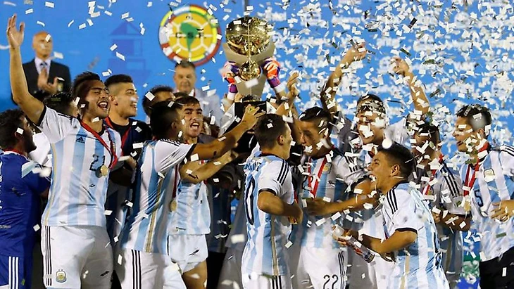 Сборная Аргентины отпраздновала триумф на молодежном (U-20) чемпионате Южной Америки по футболу в Уругвае в январе-феврале 2015 года и стала первой страной, отобравшейся для участия в соревнованиях в Рио. Аргентинцы выиграли группу в первом раунде соревнований: они уверенно победили Эквадор, Боливию и Перу и проиграли только матч Парагваю.