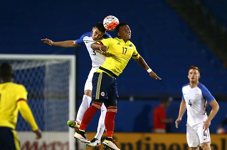 Путь сборной Колумбии в Рио поделен на две части. Первая - молодежный (U-20) чемпионат Южной Америки в Уругвае, на котором они заняли второе место. Пройдя первый групповой этап ни шатко, ни валко (две победы и два поражения), в финальной стадии Лос Кафетерос обрели лучшую форму. Они не проиграли ни разу, при этом сыграв вничью с хозяевами и разгромив сборную Бразилии со счетом 3:0, и пропустили вперед в итоговом протоколе только молодежку Аргентины.