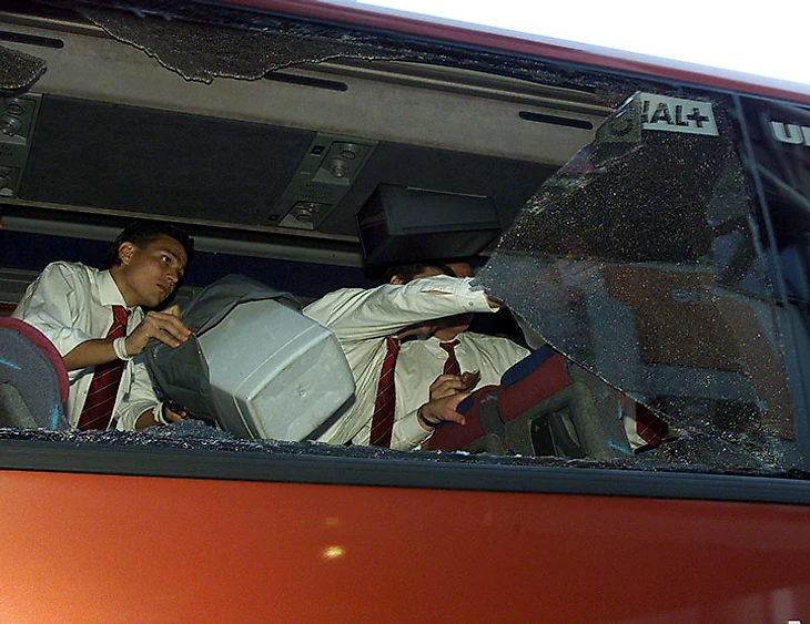 Литманен в автобусе «Аякса», атакованном фанатами «Фейенорда»