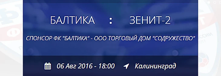 19:00 «БАЛТИКА» Калининград (9) – «ЗЕНИТ-2» Санкт-Петербург (2)