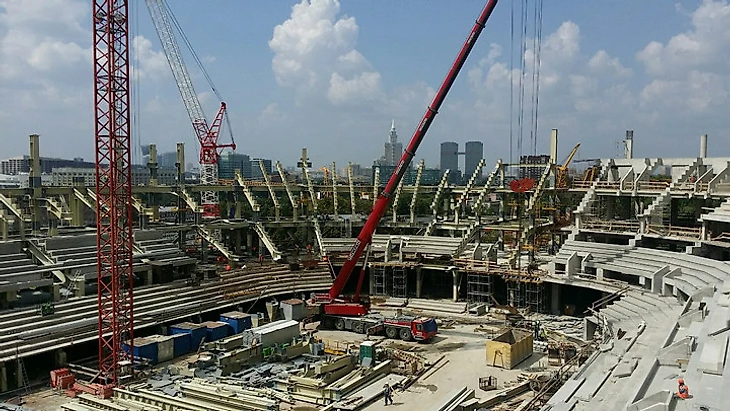 Монтаж сборных элементов железобетонных трибун (малая арена)