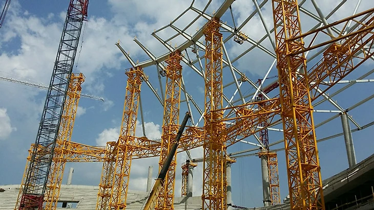 Производство грузоподъемных работ металлоконструкций по устройству кровли (Большая арена, 1 этаж)