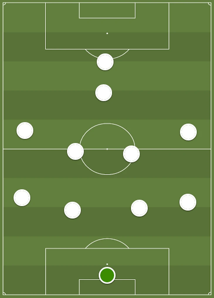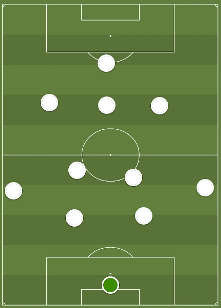 Здесь "Шпоры" играют в нечто похожее на 3-4-2-1. Эта расстановка, которая реально продвигает идею атаки в пять вертикальный линий - зачастую наблюдалась на впечатляющем отрезке с января по март, когда постоянное превосходство над соперниками в плане физики означало, что они могут применить такую атакующую схему благодаря своему интенсивному прессингу.